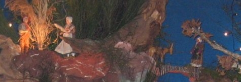 Tous sont attendus – pèlerins ou simple passants – pour contempler cette crèche ; les observateurs les plus attentifs pourront y dénicher les nombreux détails qui fourmillent. Vous pourrez admirer les deux ponts suspendus, avec un canard qui semble y avoir établi sa demeure, ou encore un âne rétif à le franchir, malgré les encouragements de son maître. Les nombreux santons sont bien répartis sur toute la surface de la crèche, ce qui donne à l’ensemble une belle note d’équilibre et d’harmonie ; les nombreux feuillages assurent aussi une coloration très verdoyante à cette crèche toute en hauteur.