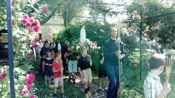 16h15 : Chapelet chanté en procession dans le parc avec le brancard fleuri de Notre Dame