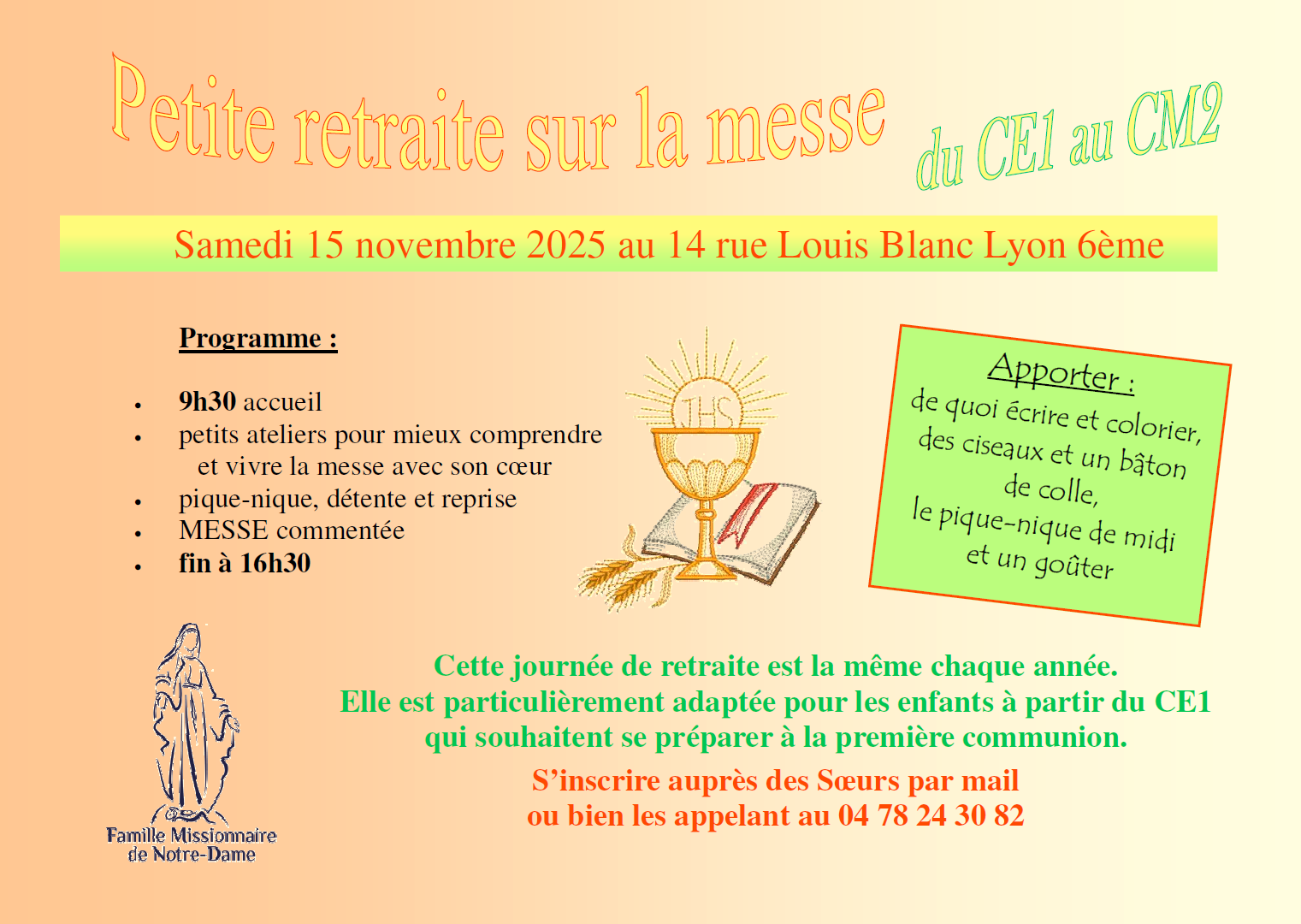 Journée de retraite pour enfants sur la Messe le samedi 15 novembre 2025