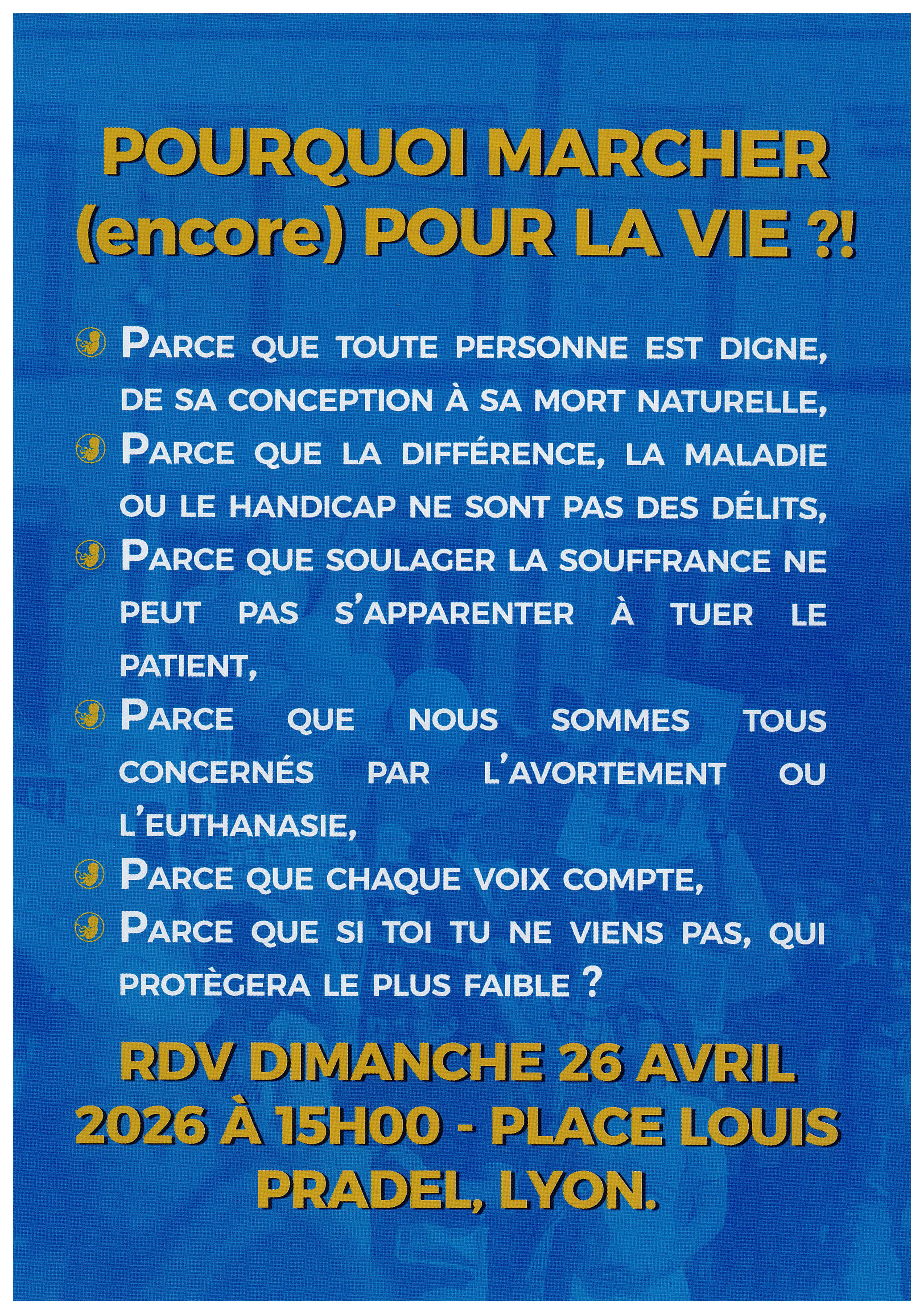 Marche pour la Vie à Lyon dimanche 26 avril 2026 à 15h00