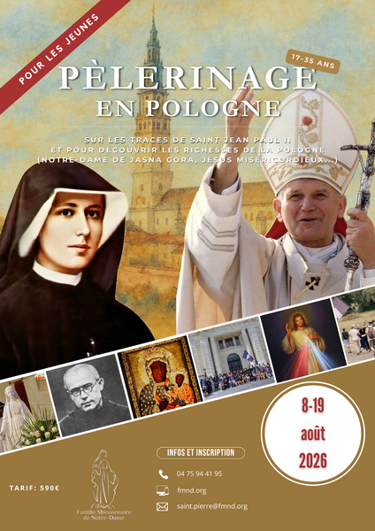 NB : Le prix ne doit pas être une cause d’empêchement, en cas de difficulté, merci d’avoir la simplicité de nous contacter (mail : saint.pierre@fmnd.org)