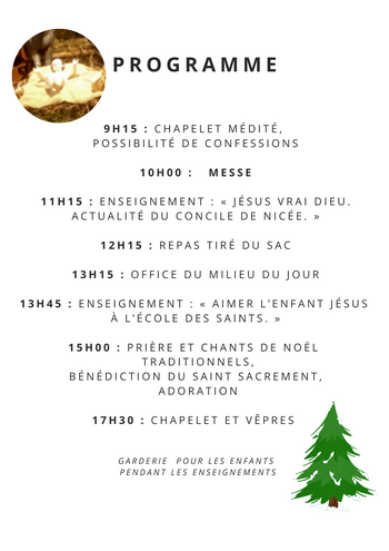 17h 30 : chapelet, vêpres, bénédiction du Saint Sacrement